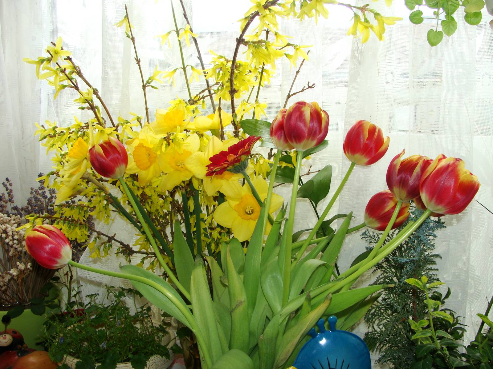 už jsem si troufla i na trochu práce na záhonech, těší mne další a další jarní kytičky - fialkové krokusy odkvetly a nahradily je bílé, také rozkvetly modřence a primulky a zlatice je též před rozkvětem. U nás na severu je to všecko trochu opožděné a zima ještě neřekla úplně poslední slovo. Ale kolem poledne sluníčko krásně hřálo a prádlo už uschne venku. Jaro je zkrátka nejkrásnější období roku. Užijte si ho!